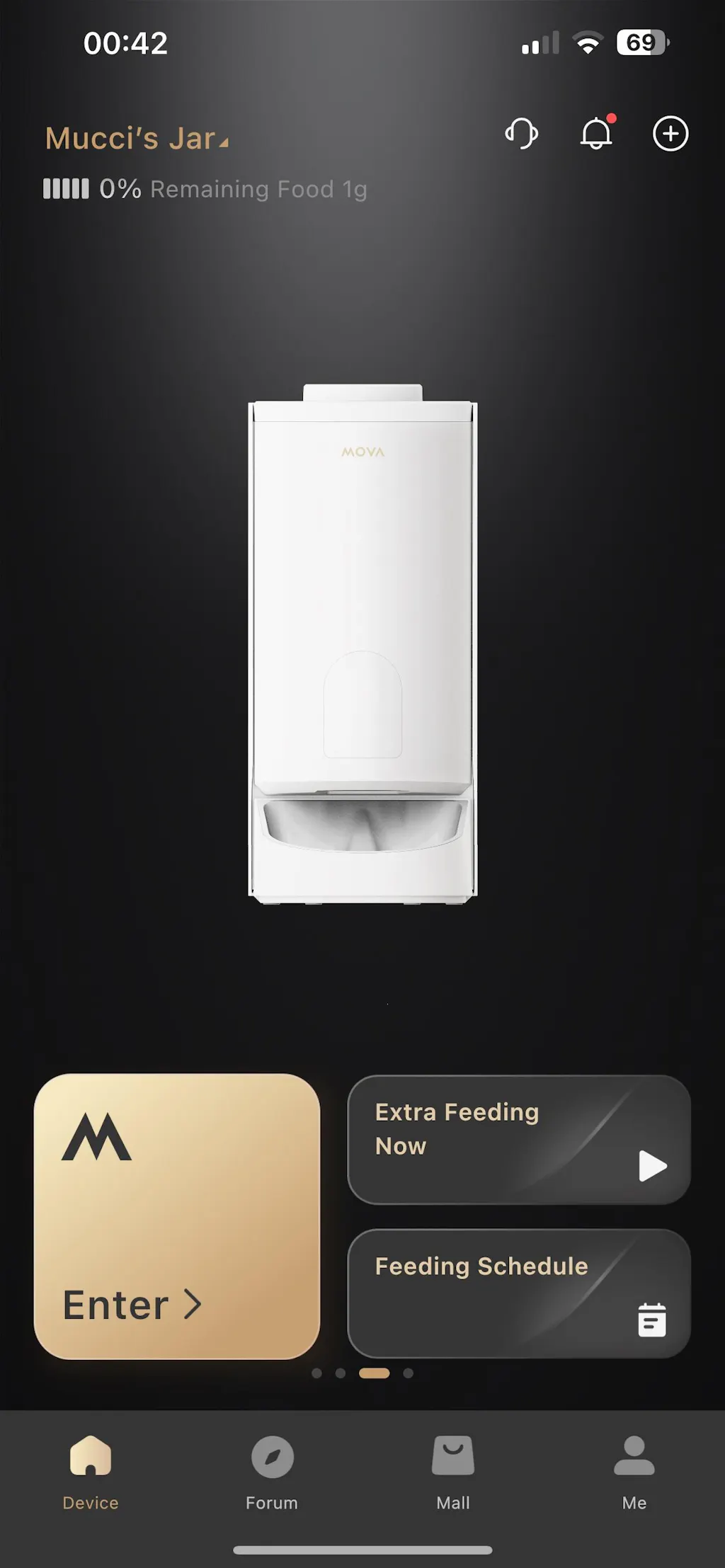 Easily manage your pet's feeding schedule with the MOVAhome App, ensuring they always get the meals on time by setting the time and quantity of each feeding. You can also manually dispense food through the button at the bottom of the machine.